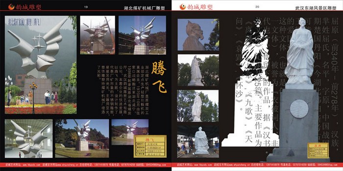 武漢韻城雕塑藝術公司,省市大型雕塑企業,公司位于武漢市江夏區世紀廣場,工廠總面積9000多平方,藝術名家之多,配置三維建模和3D掃描打印先進系統,大型程控雕刻設備。精典工程有:武漢萬達步行街雕塑,武鋼工業遺址公園雕塑,天河機場T2銅雕塑,漢正街復地大型不銹鋼雕塑,漢口吉慶街雕塑工程,荊州廣場鳳凰雕塑,貴陽大數據廣場雕塑...